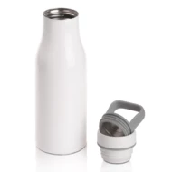 Butelka termiczna 500 ml Air Gifts z uchwytem, podwójne ścianki ze stali nierdzewnej z próżnią między ściankami dzięki czemu zachowuje funkcje termosu i długo utrzymuje temperaturę nie oddając jej na zewnątrz, pojemnik w zakrętce, w ozdobnym pudełku, utrzymuje temperaturę napojów gorących do 15 godzin +leakproof