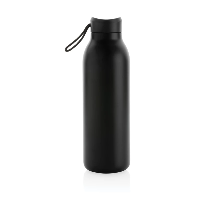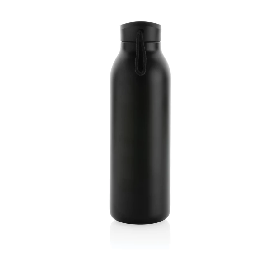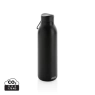 Butelka termiczna 500 ml, podwójne ścianki ze stali nierdzewnej z recyklingu z próżnią pomiędzy, zawartość materiałów z recyklingu obliczona na podstawie wagi całkowitej przedmiotu: 97%, utrzymuje temperaturę napojów ciepłych do 10 godzin oraz zimnych do 20 godzin, pasuje do większości uchwytów samochodowych, w pudełku z certyfikatem FSC®, klasa termiczna: A, ślad węglowy produktu: 1,35 kg CO2