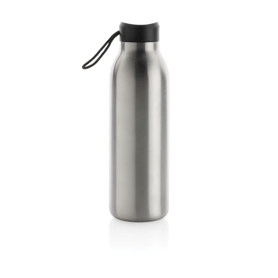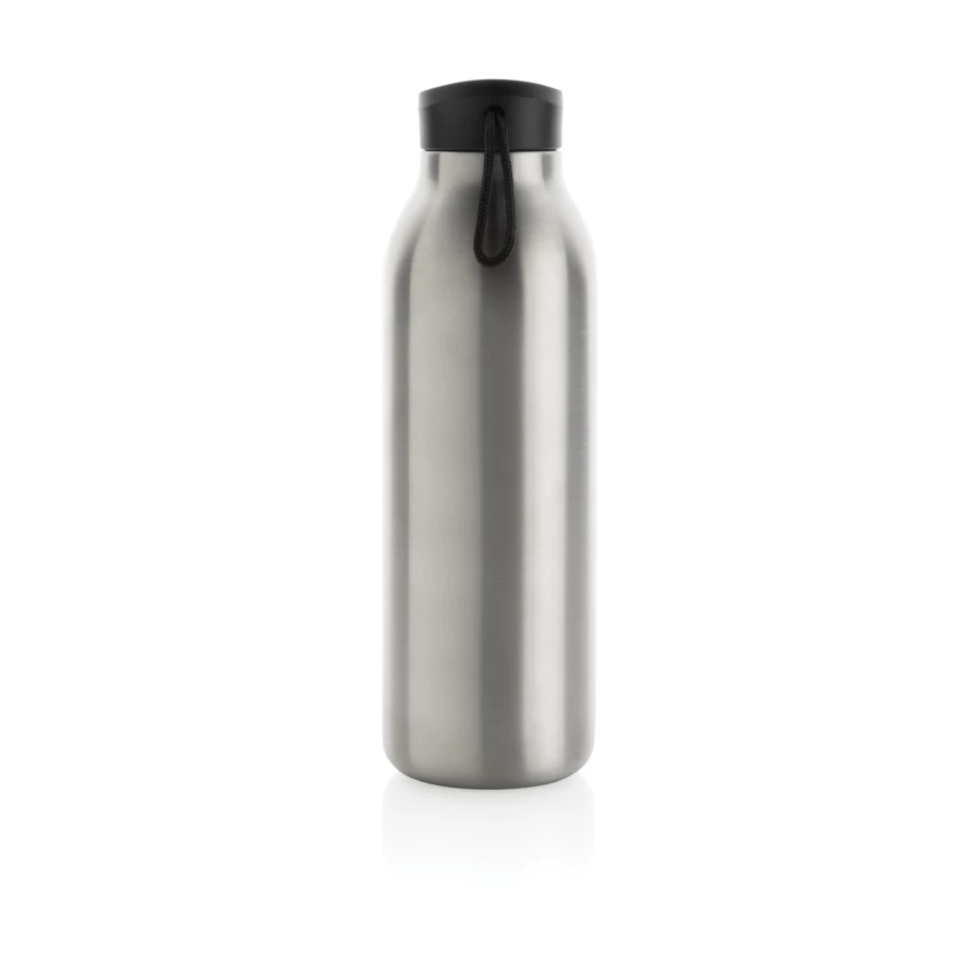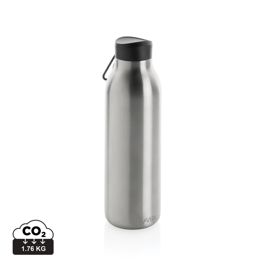 Butelka termiczna 500 ml, podwójne ścianki ze stali nierdzewnej z recyklingu z próżnią pomiędzy, zawartość materiałów z recyklingu obliczona na podstawie wagi całkowitej przedmiotu: 97%, utrzymuje temperaturę napojów ciepłych do 10 godzin oraz zimnych do 20 godzin, pasuje do większości uchwytów samochodowych, w pudełku z certyfikatem FSC®, klasa termiczna: A, ślad węglowy produktu: 1,35 kg CO2