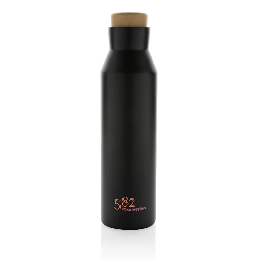Butelka termiczna 500 ml, podwójne ścianki z próżnią pomiędzy, utrzymuje temperaturę napojów ciepłych do 5 godzin oraz zimnych do 15 godzin, wykonana ze stali nierdzewnej z recyklingu z certyfikatem RSC (Recycled Claim Standard) który gwarantuje, że wykorzystane materiały pochodzą z recyklingu, całkowita zawartość materiału z recyklingu obliczona w oparciu o wagę całkowitą przedmiotu: 88%, ślad węglowy produktu: 2,38 kg CO2