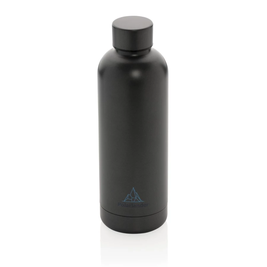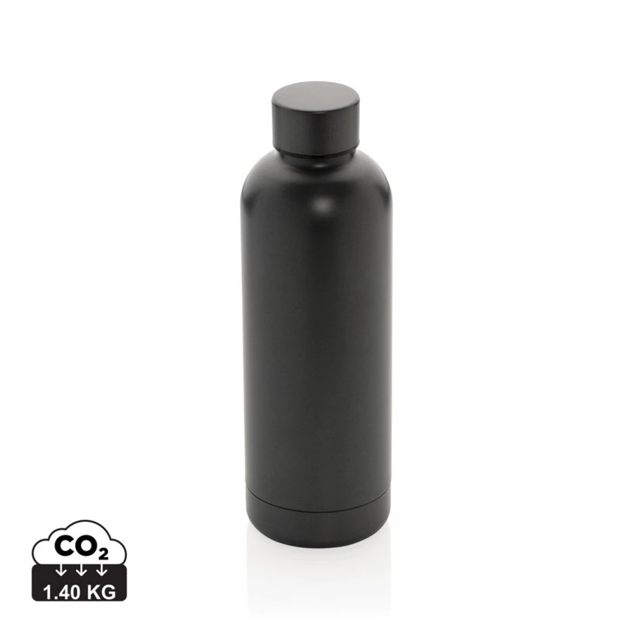 Butelka termiczna 500 ml, wykonana z materiałów pochodzących z recyklingu z certyfikatem RCS, całkowita zawartość materiałów z recyklingu obliczona na podstawie wagi całkowitej przedmiotu: 80%, podwójne ścianki z próżnią pomiędzy, minimalistyczne wykończenie, w opakowaniu z papieru kraftowego, utrzymuje temperaturę napojów gorących do 5 godzin oraz zimnych do 15 godzin