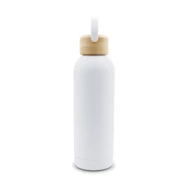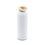 Butelka termiczna 500 ml, posiada podwójne ścianki ze stali nierdzewnej z próżnią między ściankami, co spowalnia oddawanie temperatury na zewnątrz, zachowując funkcje termosu, gumowe wykończenie, bambusowa zakrętka ze składanym uchwytem wykonanym z silikonu ułatwiającym noszenie, produkt wykonany ze stali nierdzewnej, plastiku i bambusa, utrzymuje temperaturę napojów gorących do 20 godzin +leakproof