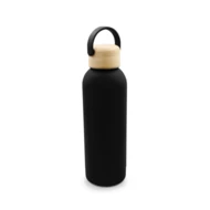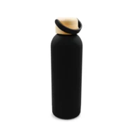 Butelka termiczna 500 ml, posiada podwójne ścianki ze stali nierdzewnej z próżnią między ściankami, co spowalnia oddawanie temperatury na zewnątrz, zachowując funkcje termosu, gumowe wykończenie, bambusowa zakrętka ze składanym uchwytem wykonanym z silikonu ułatwiającym noszenie, produkt wykonany ze stali nierdzewnej, plastiku i bambusa, utrzymuje temperaturę napojów gorących do 20 godzin +leakproof