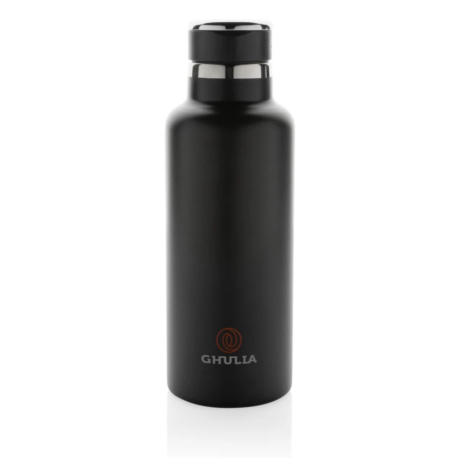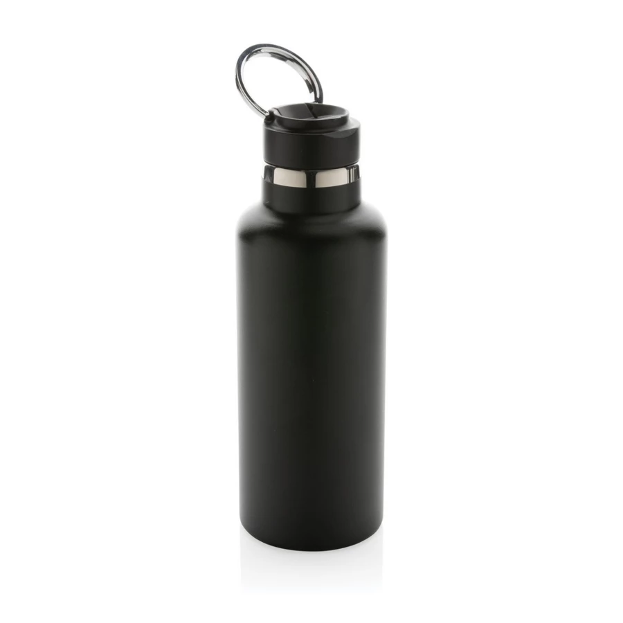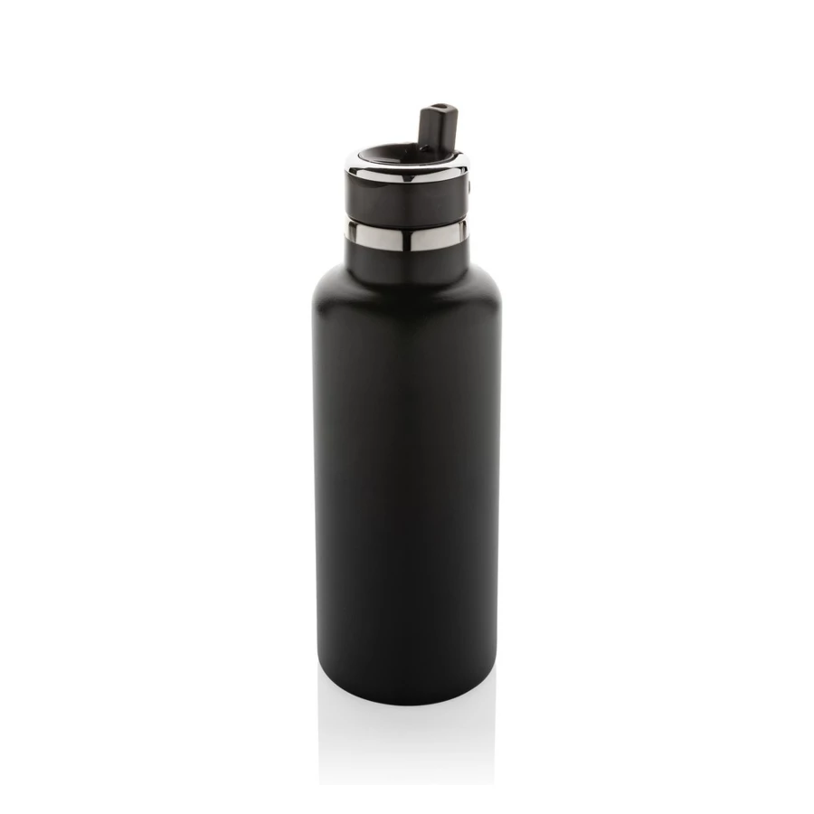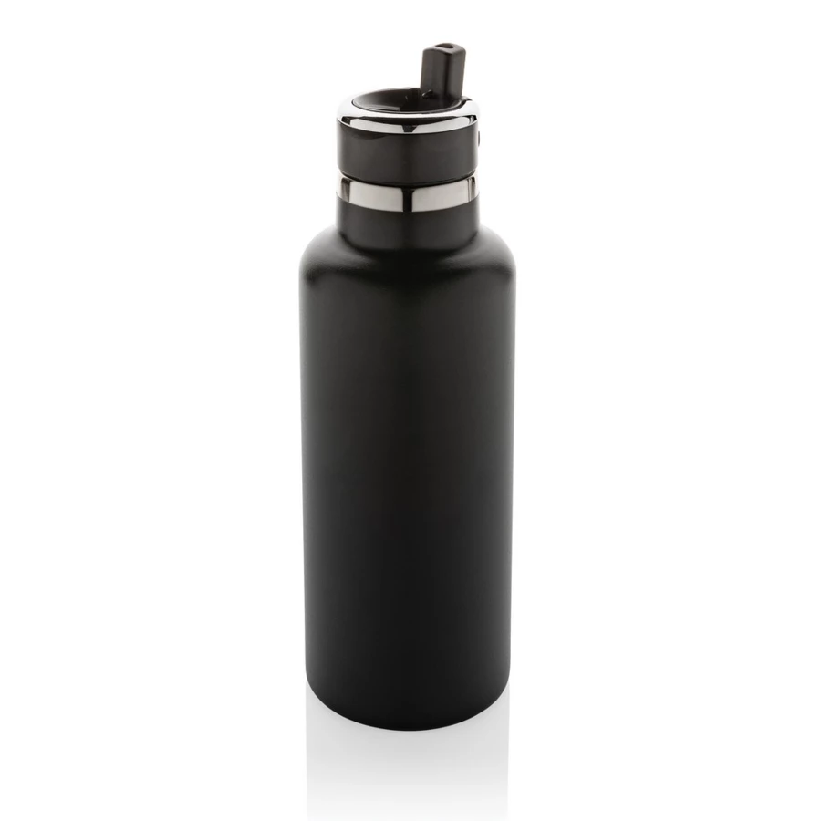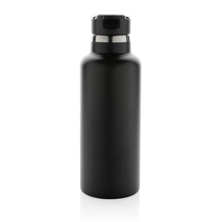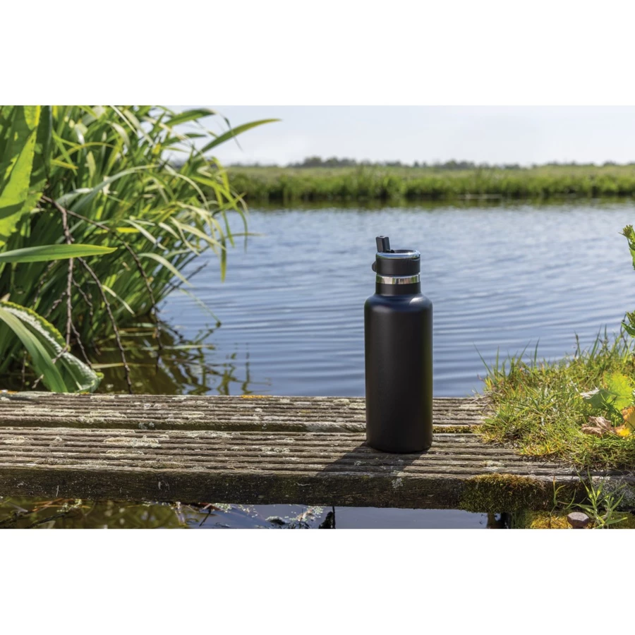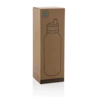 Butelka termiczna 600 ml, składany ustnik w nakrętce, podwójne ścianki z próżnią pomiędzy, utrzymuje temperaturę napojów ciepłych do 5 godzin oraz zimnych do 15 godzin, wykonana z materiałów pochodzących z recyklingu z certyfikatem RSC, całkowita zawartość materiału z recyklingu obliczona w oparciu o wagę całkowitą przedmiotu: 83%, w pudełku z papieru kraftowego z certyfikatem FSC®, nie zawiera BPA, ślad węglowy produktu: 2,49 kg CO2