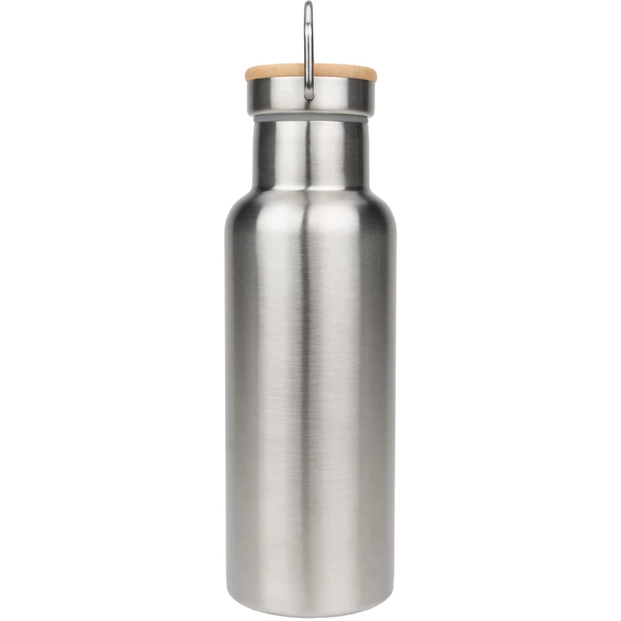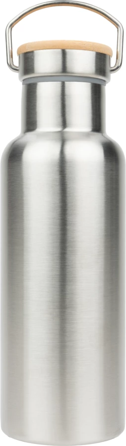 Butelka ze stali nierdzewnej o pojemności 750 ml ze szczelnym bambusowym wieczkiem, paskiem do przenoszenia. Butelka utrzymuje temperaturę do 6h zimno oraz do 8h ciepło napoju.