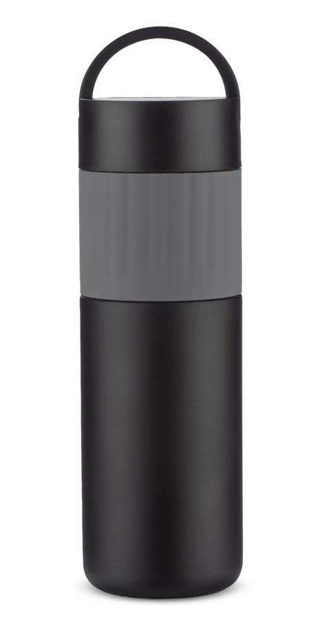 Butelka termiczna HOLDEN dzięki próżni między ściankami trzyma temperaturę ok. 12 godzin. Wykonana jest ze stali nierdzewnej 304. Posiada wygodny silikonowy uchwyt. Przykrywka wykonana z tworzywa posiada w swojej konstrukcji stojak do telefonu