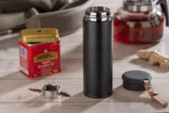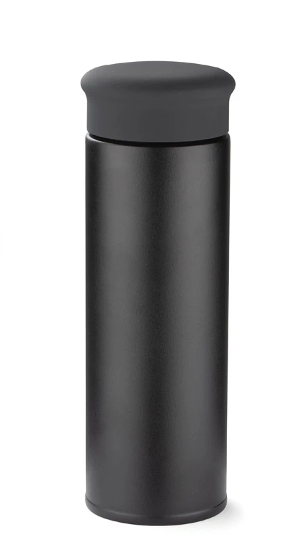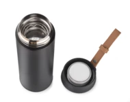 Butelka termiczna MACHO łączy w sobie elegancki wygląd i wysoką jakość wykonania. Dzięki próżni między ściankami trzyma temperaturę ok. 13 godzin. Wykonana ze stali nierdzewnej 304. Przykrywka pokryta jest powłoką soft touch, co sprawia, że jest przyjemna w dotyku, a pasek z materiału skóropodobnego (PU) dodatkowo wpływa na wygodę użytkowania. Wewnątrz znajduje się sitko, dzięki któremu możemy zaparzyć herbatę.