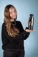 Butelka termiczna RON to doskonały wybór dla aktywnych osób, które cenią sobie zarówno wygodę, jak i funkcjonalność. Będzie idealna na trening i spontaniczne wyprawy. Butelka jest wyposażona w karabińczyk oraz dwie smycze: krótką i długą na zmianę, umożliwiające wygodne przenoszenie i łatwe dostosowanie do różnych sytuacji. Wystarczy założyć ją na nadgarstek podczas biegu lub zawiesić na plecach podczas wędrówki. Dodatkowo RON posiada zamknięcie z praktycznym schowkiem na drobiazgi (np. tabletki czy suplementy diety). Unikalna podstawa z tworzywa, która po wykręceniu staje się dodatkowym kubkiem, eliminuje ryzyko poparzenia języka i pozwala na wygodniejsze spożywanie napoju.