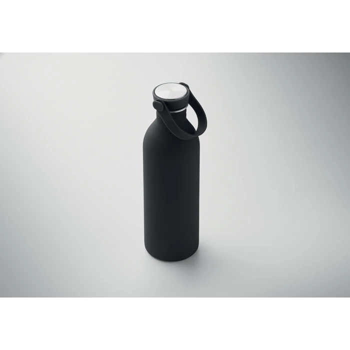 Jednościenna butelka 90% stal nierdzewna z recyklingu 10% stal nierdzewna. Gumowe wykończenie. Pokrywka z PP i SS sylikonowy uchwyt. 500 ml. Butelka jednościenna, może występować przenoszenie ciepła.