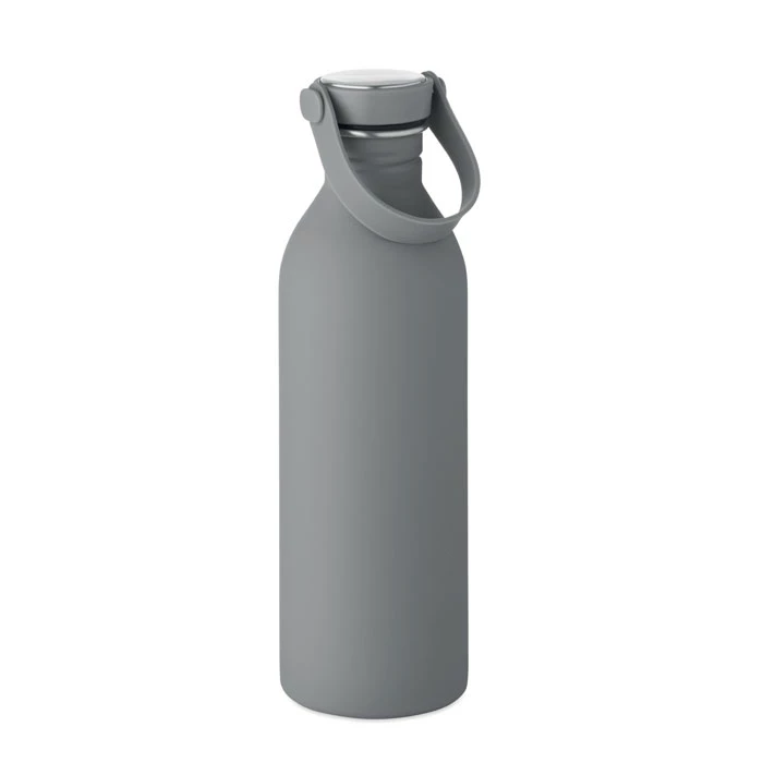 Jednościenna butelka 90% stal nierdzewna z recyklingu 10% stal nierdzewna. Gumowe wykończenie. Pokrywka z PP i SS sylikonowy uchwyt. 500 ml. Butelka jednościenna, może występować przenoszenie ciepła.