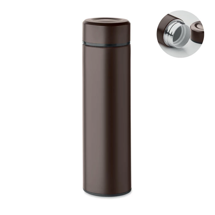 Dwuścienna butelka z izolacją próżniową z recyklingowanej stali nierdzewnej (90% z recyklingowanej stali nierdzewnej i 10% ze stali nierdzewnej) z ceramiczną warstwą wewnętrzną. Pojemność: 420 ml.