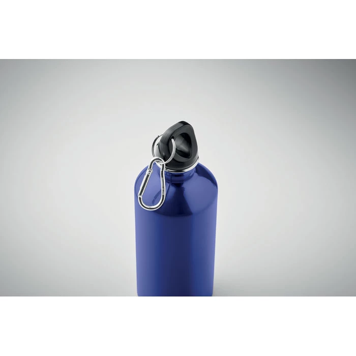 Butelka z pojedynczą ścianką z recyklingowanej stali nierdzewnej (90% stali nierdzewnej z recyklingu i 10% stali nierdzewnej) z karabińczykiem. 500 ml. Nadruk sublimacyjny dostępny tylko w kolorze białym. Szczelna. Ponieważ jest to kubek z pojedynczą ścianką, może dochodzić do wymiany ciepła.