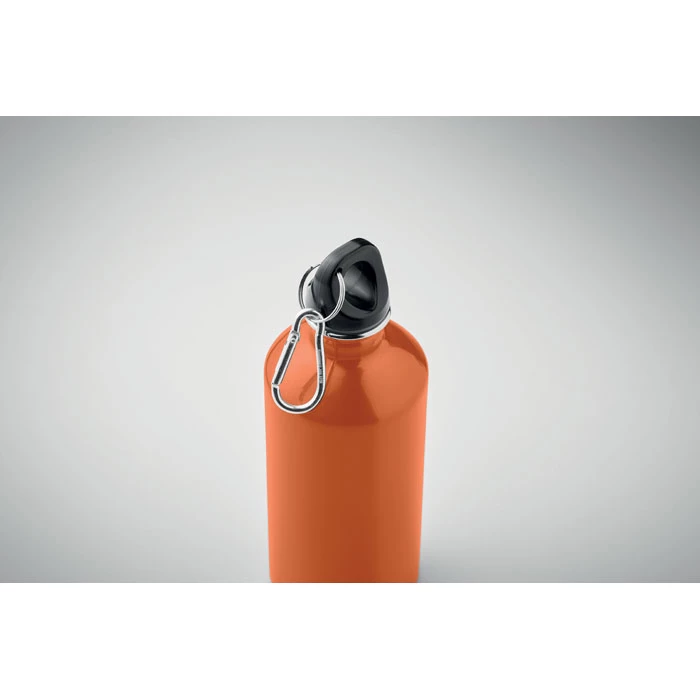 Butelka z pojedynczą ścianką z recyklingowanej stali nierdzewnej (90% stali nierdzewnej z recyklingu i 10% stali nierdzewnej) z karabińczykiem. 500 ml. Nadruk sublimacyjny dostępny tylko w kolorze białym. Szczelna. Ponieważ jest to kubek z pojedynczą ścianką, może dochodzić do wymiany ciepła.