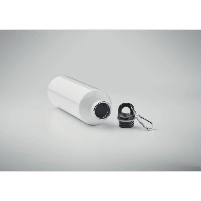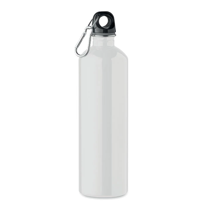 Jednościenna butelka z recyklingowanej stali nierdzewnej (90% stali nierdzewnej z recyklingu i 10% stali nierdzewnej) z karabińczykiem. Pojemność: 750 ml. Karabińczyk nie jest przeznaczony do wspinaczki (nie służy do użytku profesjonalnego). Nadruk sublimacyjny dostępny tylko w kolorze białym. Szczelna. Ponieważ jest to butelka z pojedynczą ścianką, może dochodzić do wymiany ciepła.