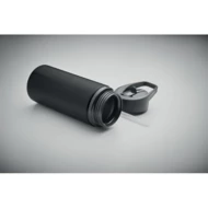 Jednościenna butelka z recyklingowanej stali nierdzewnej (90% stali nierdzewnej z recyklingu i 10% stali nierdzewnej) ze składanym ustnikiem, słomką i pokrywką z uchwytem do przenoszenia. Pojemność: 500 ml. Ponieważ jest to butelka z pojedynczą ścianką, może dochodzić do wymiany ciepła.