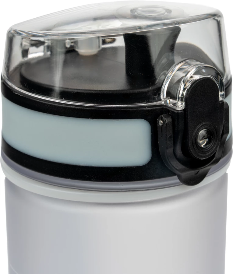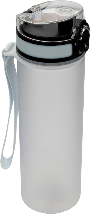 Sportowa butelka do picia, wykonana z Tritanu z powierzchnią soft touch. Butelka posiada wygodne otwieranie na przycisk, pętelkę do noszenia i nadrukowaną miarkę w ml. Pojemność 570 ml.