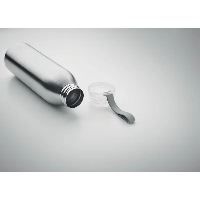 Jednościenna butelka ze stali nierdzewnej z pokrywką z PP i silikonową zawieszką. Pojemność: 650 ml. Ponieważ jest to kubek z pojedynczą ścianką, może dochodzić do wymiany ciepła.