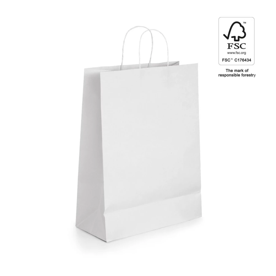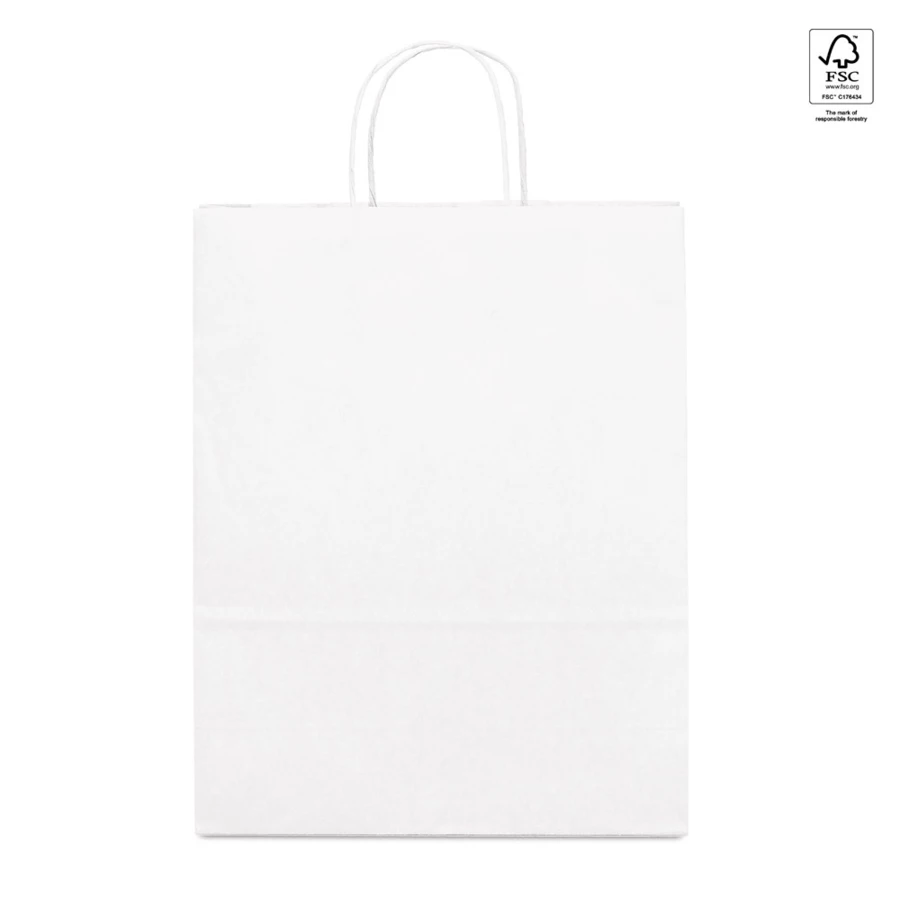 Torba papierowa Kraft (90 g/m²) ze skręcanym uchwytem. Wyprodukowano w Europie. Ten produkt jest wykonany z materiałów z certyfikatem FSC™ i innych kontrolowanych materiałów. 240 x 310 x 90 mm