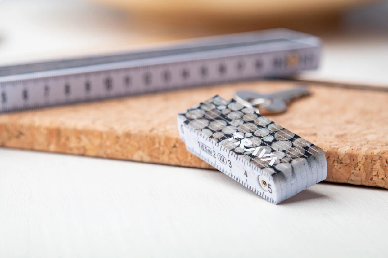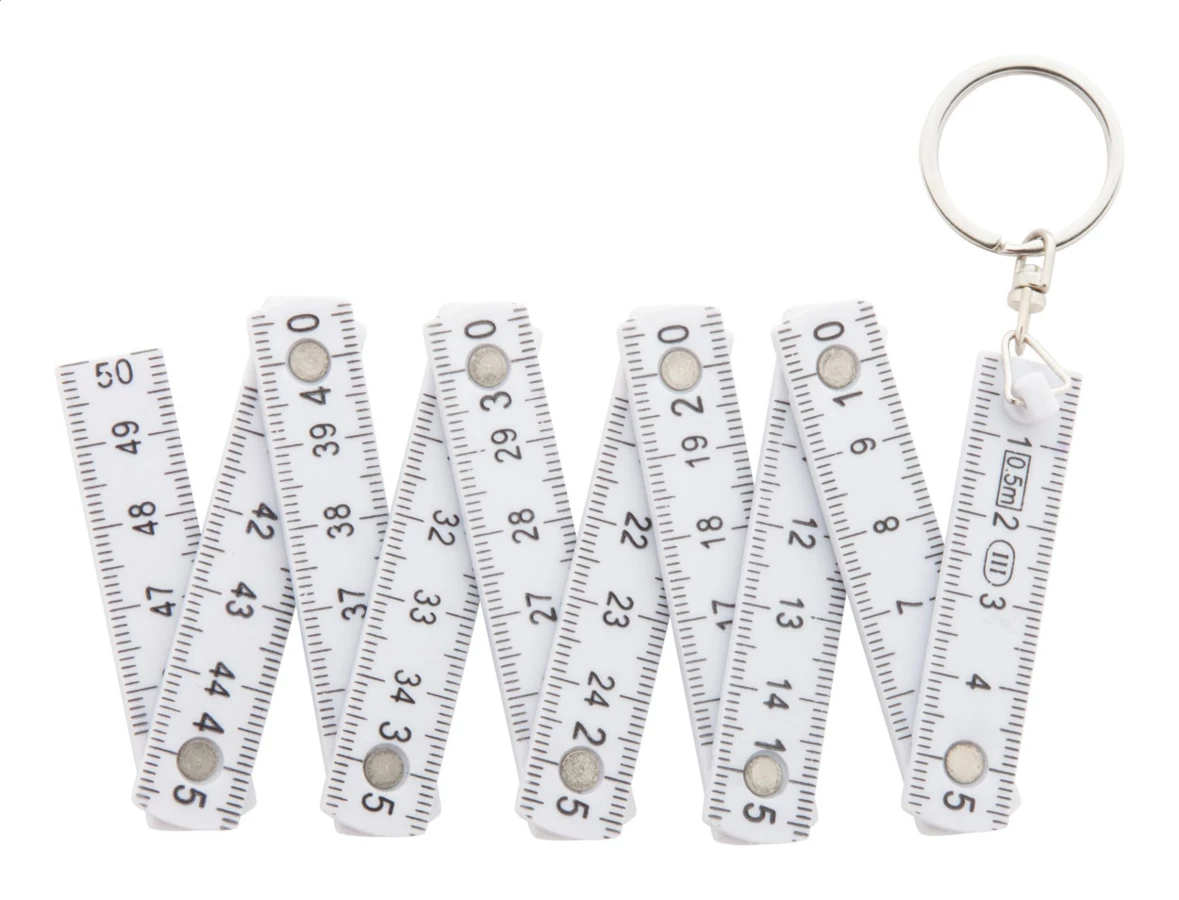 Plastikowa, składana miara z metalowym brelokiem, 0,5 m.