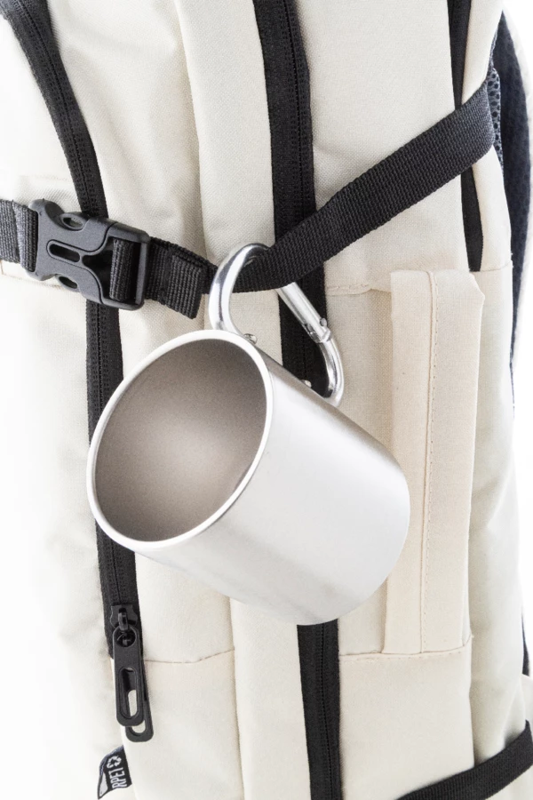 Kubek ze stali nierdzewnej z kolorowym karabińczykiem, pojemność 200 ml.