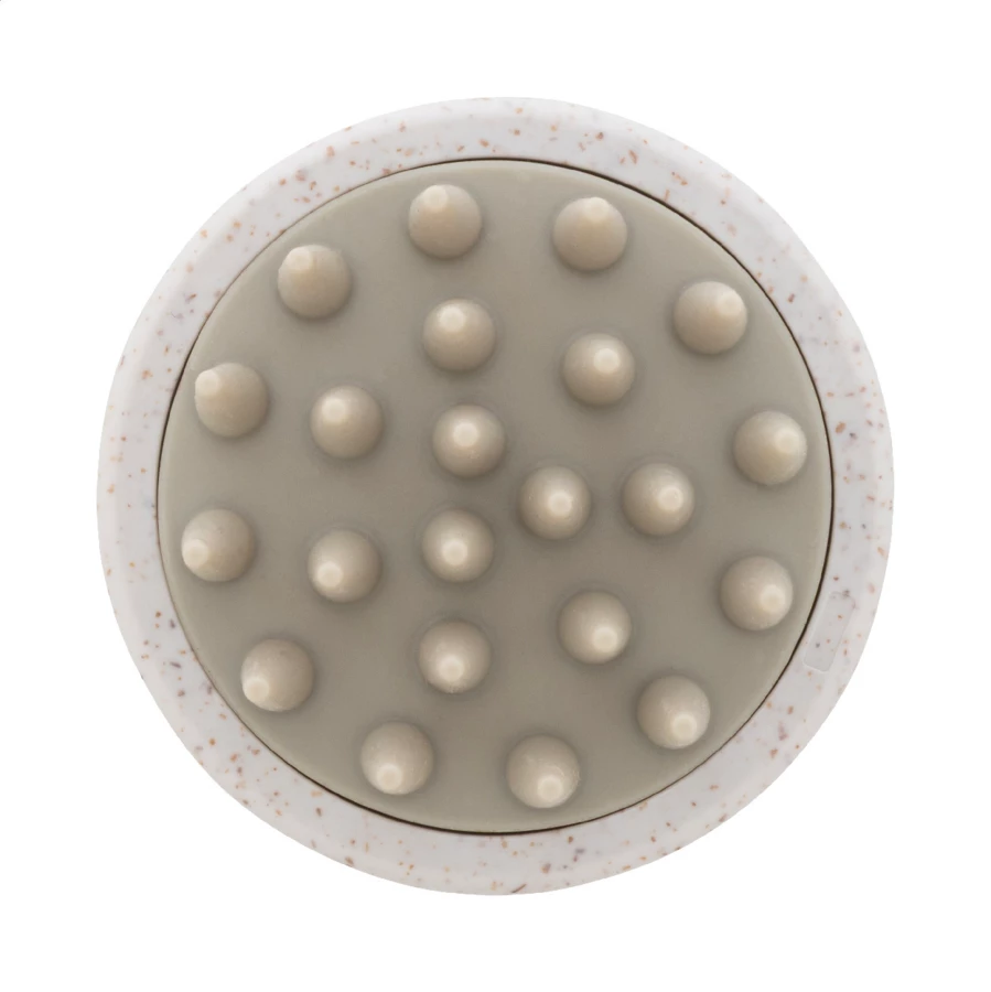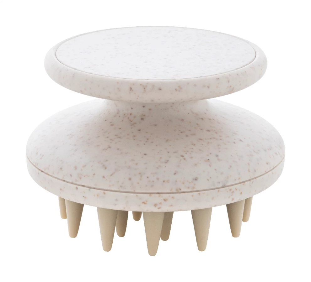 Ekologiczny masażer do skóry głowy z tworzywa sztucznego ze słomy pszenicznej z silikonowym włosiem. Idealny do pobudzania krążenia i lepszego rozprowadzania szamponu podczas mycia włosów.