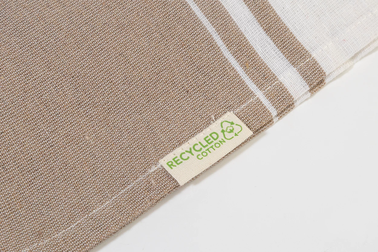 Dwukolorowy ręcznik plażowy typu pareo wykonany w 70% z bawełny pochodzącej z recyklingu i w 30% z poliestru RPET, 180 g/m²