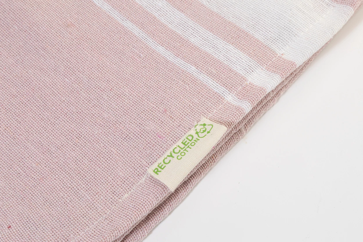 Dwukolorowy ręcznik plażowy typu pareo wykonany w 70% z bawełny pochodzącej z recyklingu i w 30% z poliestru RPET, 180 g/m²