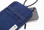 Torba na telefon komórkowy z płótna z recyklingu, z główną komorą zapinaną na zamek, kieszenią z przodu i regulowanym sznurkiem z poliestru RPET. Wykonana w 70% z bawełny z recyklingu i w 30% z poliestru RPET. Z charakterystyczną metką z bawełny z recyklingu.