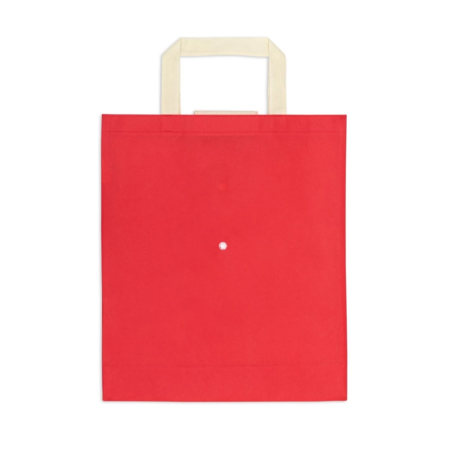 Składana torba wykonana z materiału non-woven (80 g/m²). Posiada uchwyty o długości 35 cm. Dostarczana złożona. Rozmiar w stanie rozłożonym: 350 x 410 x 100 mm | Rozmiar po złożeniu: 135 x 130 x 15 mm