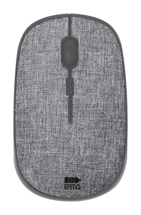 Bezprzewodowa mysz optyczna z obudową pokrytą poliestrem RPET. Działa z 1 baterią AA, dostarczaną bez baterii.