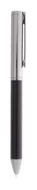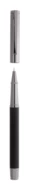 Elegancki metalowy zestaw składający się z długopisu i pióra kulkowego w czarnym papierowym pudełku upominkowym. Z niebieskim wkładem.