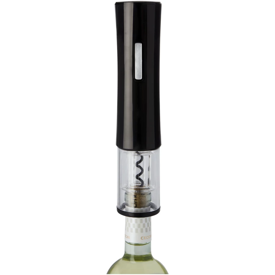 Elektryczny otwieracz do wina z funkcją obcinania folii. Działa na 4 baterie AA (nie dołączone do zestawu).
