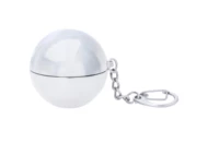 Okrągły, waniliowy balsam do ust w metalicznym pojemniku z metalowym brelokiem. Z ochroną SPF15.