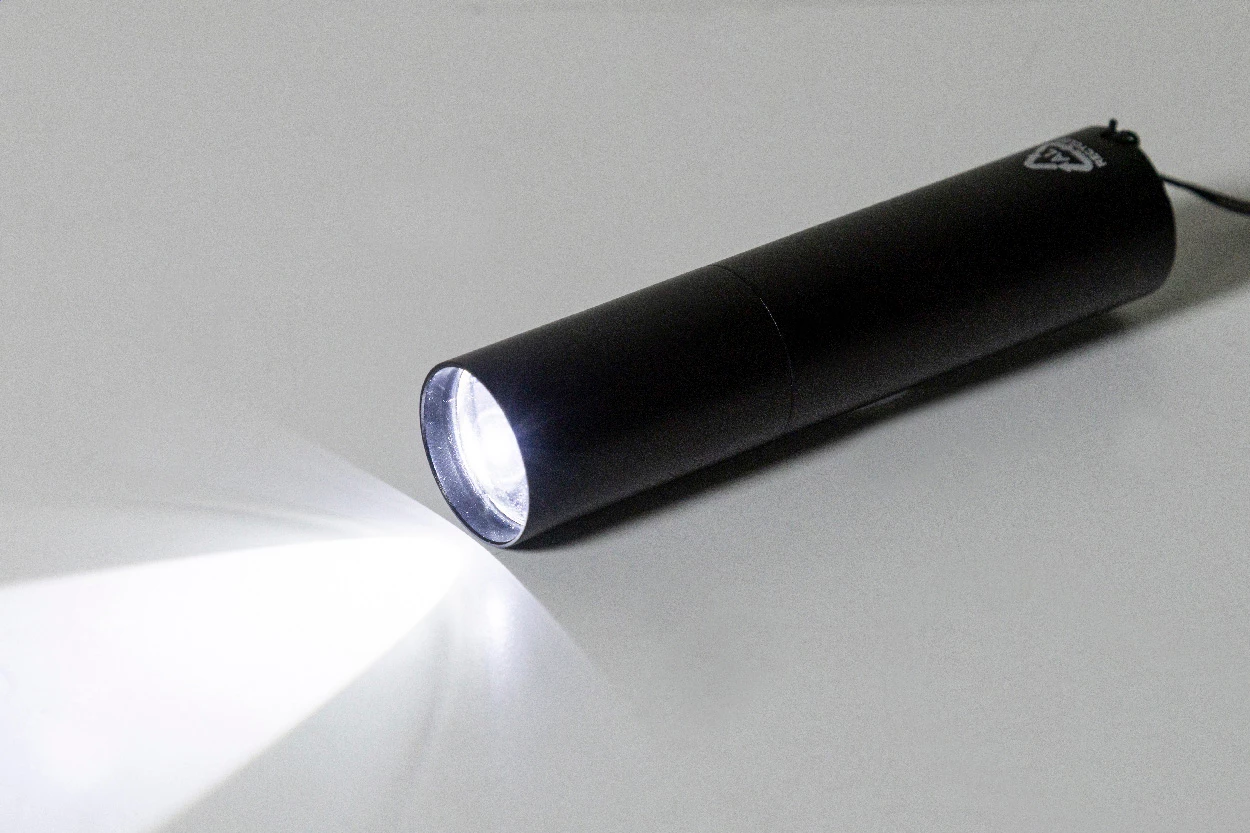 Latarka z recyklingowanego aluminium z wbudowanym akumulatorem USB (400 mAh) i paskiem do noszenia. Z regulacją jasności i mocną latarką COB oraz 3 trybami świecenia. W zestawie kabel USB do ładowania.