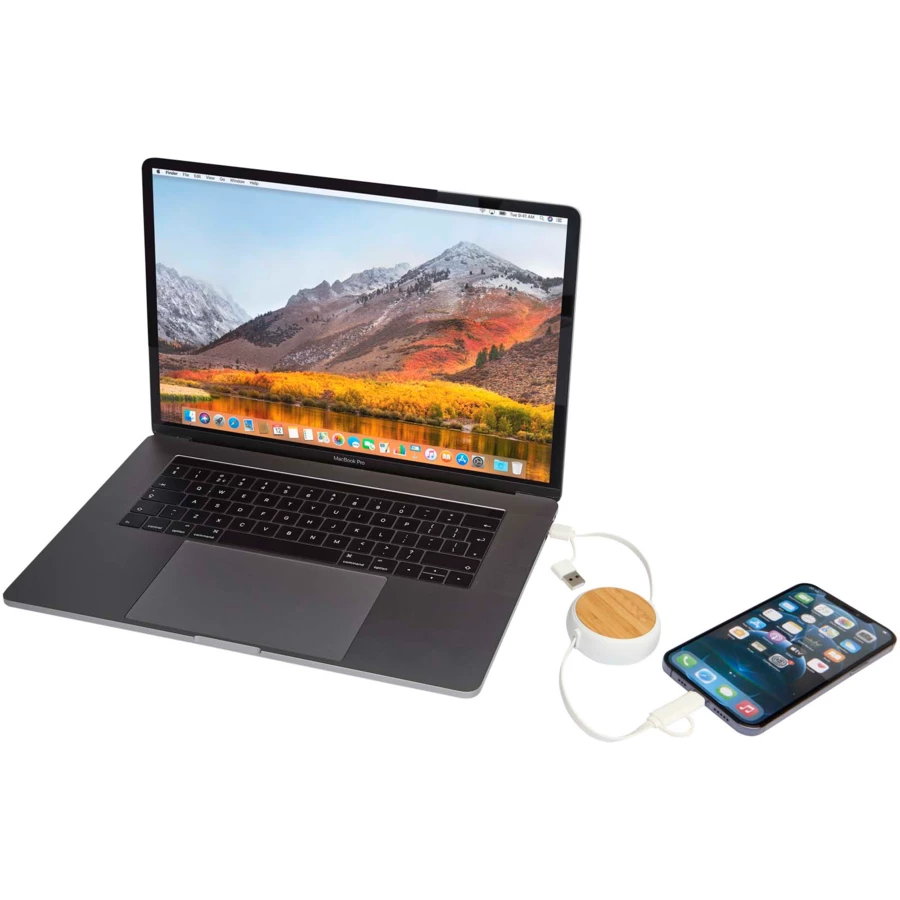 Chechia zwijany kabel do synchronizacji danych i szybkiego ładowania 5 w 1 45 W o długości 100 cm z tworzyw sztucznych pochodzących z recyklingu z detalami z bambusa (NPC-12441901)
