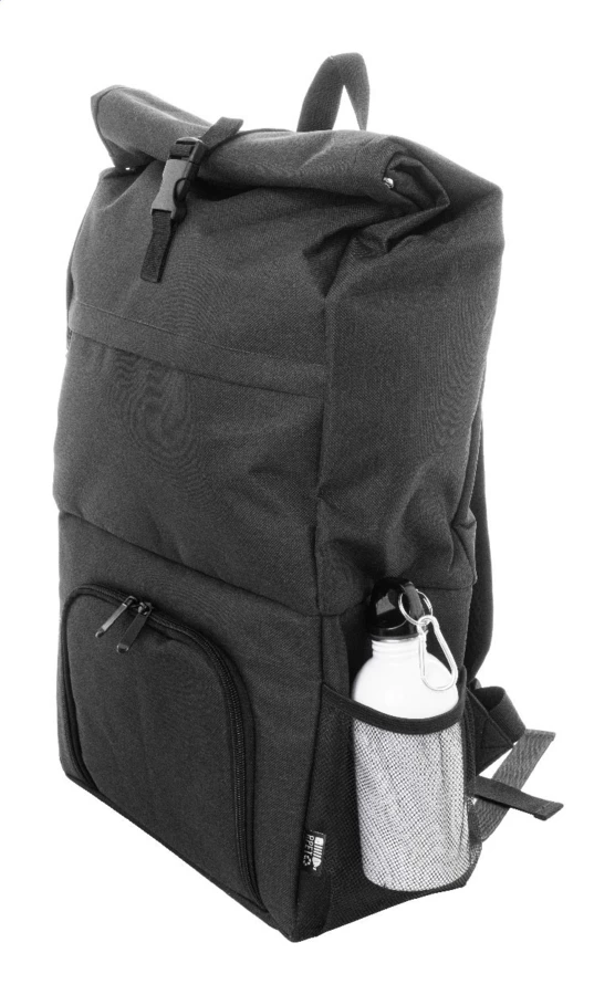 Plecak termoizolacyjny Rolltop RPET z zapinaną na suwak komorą chłodzącą PEVA na lunch box. Z główną komorą zamykaną na suwak, przednią kieszenią zapinaną na suwak, bocznymi kieszeniami z siatki i wyściełanymi paskami na ramię. Poliester RPET 600D z charakterystyczną metką RPET.