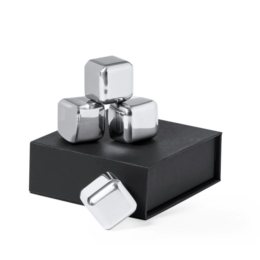 Chłodzące kostki do napojów ze stali nierdzewnej, 4 szt., wielokrotnego użytku, w ozdobnym pudełku