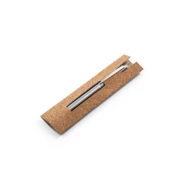 Długopis z korpusem ze stali nierdzewnej (53% rSS) i klipem. Długopis ma czarny wkład i mechanizm obrotowy. Dostarczany w korkowej torbie prezentowej. Pióro kulkowe: ø11 x 137 mm | Etui: 155 x 40 mm