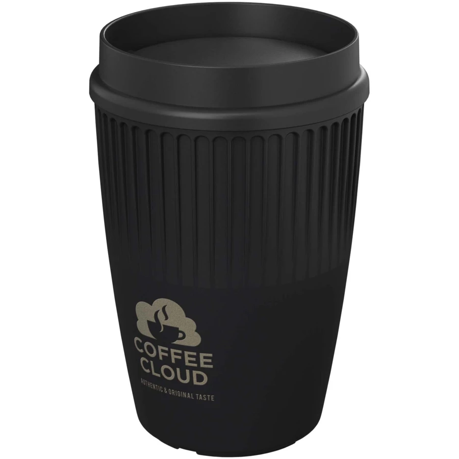 Cirrus kubek o pojemności 350 ml z wyjątkową, 360-stopniową, zatrzaskową pokrywką to elegancki i stylowy kubek do picia z jednowarstwową ścianką, wyposażony w izolacyjne wypustki zapewniające bezpieczne i wygodne użytkowanie. Innowacyjna pokrywka 360° umożliwia picie z dowolnej strony kubka i wzmacnia doznania związane z piciem dzięki silniejszemu aromatowi wybranego napoju. Zarówno pokrywka, jak i kubek wykonane są z tworzyw sztucznych w pełni nadających się do recyklingu. Ciesz się swoimi ulubionymi gorącymi napojami w wygodny i stylowy sposób.