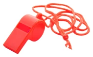 Plastikowy gwizdek ze smyczą w tym samym kolorze.