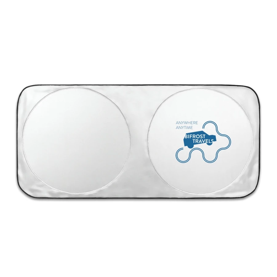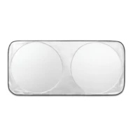 Osłona przeciwsłoneczna do samochodu wykonana z poliestru 210D, z dwoma okrągłymi powierzchniami o średnicy 65 cm. Ten innowacyjny kształt idealnie sprawdza się w cieplejsze dni. Dostarczana w woreczku z poliestru 210D, ma okrągły kształt, co ułatwia przechowywanie. 1500 x 700 mm