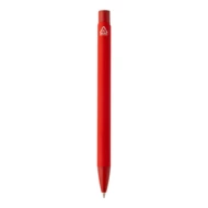 Długopis z recyklingowanego aluminium z gumowaną obudową i dopasowanymi kolorami. Z niebieskim wkładem.