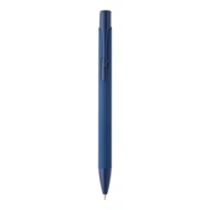 Długopis z recyklingowanego aluminium z gumowaną obudową i dopasowanymi kolorami. Z niebieskim wkładem.