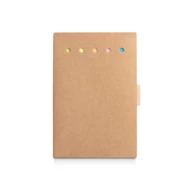 Notes z kolorowymi samoprzylepnymi kartkami, zawierający 6 zestawów (25 arkuszy każdy) i notatnik (70 g/m²) ze 100 gładkimi kartkami. W zestawie długopis. Ten produkt jest wykonany z materiałów z certyfikatem FSC™ i innych kontrolowanych materiałów. 100 x 150 mm