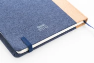 Notes z okładką z poliestru RPET z naturalnym korkowym grzbietem i 80 kartkami w linie z papieru pochodzącego z recyklingu. Z zakładką, gumowym paskiem i uchwytem na długopis. Rozmiar A5.