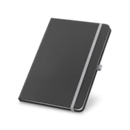 Notatnik A5 w PU z twardą okładką. Zawiera 160 stron w linie (70 g/m²), zakładkę separacyjną dostępną w różnych kolorach, elastyczną opaskę i uchwyt na długopis (nie jest dołączony). 140 x 210 mm