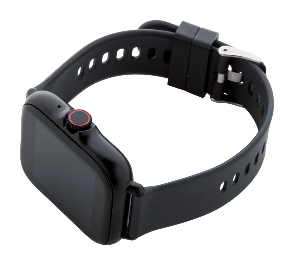 Wielofunkcyjny bezprzewodowy smartwatch w metalowej obudowie z 1,44-calowym ekranem dotykowym TFT, akumulatorem 150 mAh i silikonowym paskiem. Posiada kilka funkcji monitorowania zdrowia i inteligentnych funkcji, takich jak tętno, ciśnienie krwi i monitor tlenu, a także wiele innych. Może być połączony ze smartfonem za pomocą bezpłatnej aplikacji dostępnej dla systemów iOS i Android. W zestawie kabel USB do ładowania. Wodoodporność IP65.