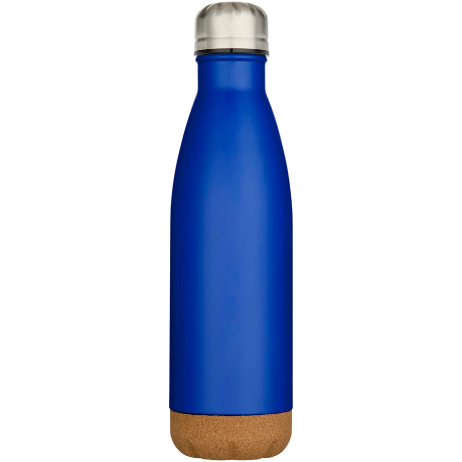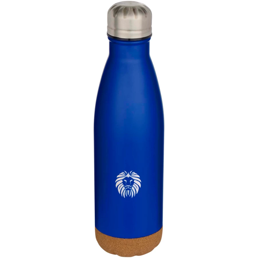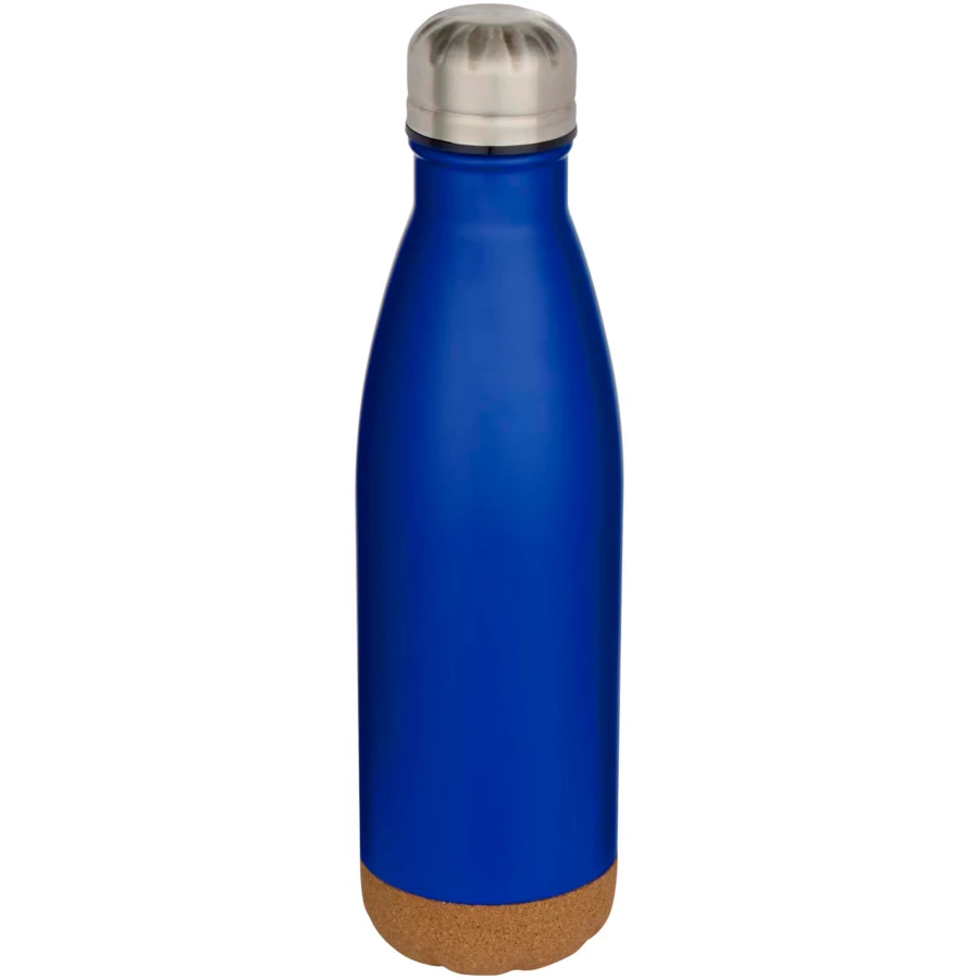 Butelka na wodę ze stali nierdzewnej, izolowana próżniowo, z detalami z korka na spodzie. Podwójna ścianka izolacyjna utrzymuje napoje ciepłe lub zimne przez kilka godzin. Zapakowana w pudełko upominkowe wykonane z kartonu z recyklingu. Pojemność: 500 ml.