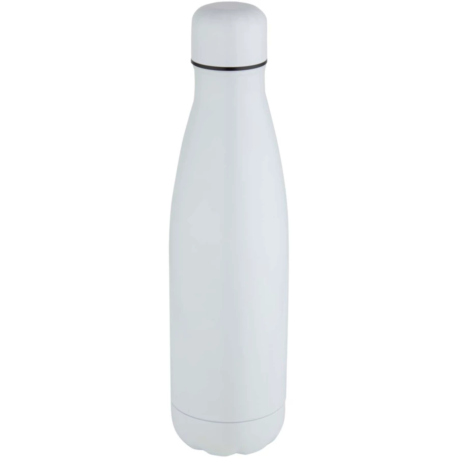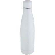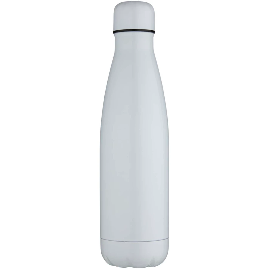 Butelka ze stali nierdzewnej z podwójnymi ściankami i izolacją próżniową, pokryta specjalną powłoką na zewnątrz, która umożliwia wykonywanie nadruków sublimacyjnych. Izolowana stal nierdzewna utrzymuje temperaturę napojów przez kilka godzin. Z podstawą pasującą do większości uchwytów na kubki. Błyszczące wykończenie. Zapakowana w pudełko upominkowe wykonane z kartonu z recyklingu. Pojemność: 500 ml.