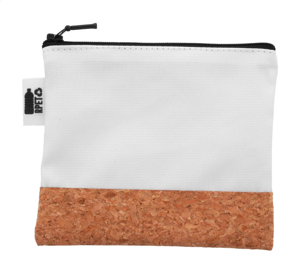 Personalizowana, zapinana na zamek kosmetyczka z poliestru 600D RPET i naturalnego korka. Z nadrukowaną grafiką sublimacyjną na całej powierzchni. Min. ilość: 50 szt.